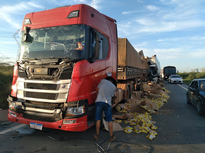 Colisão entre carretas.